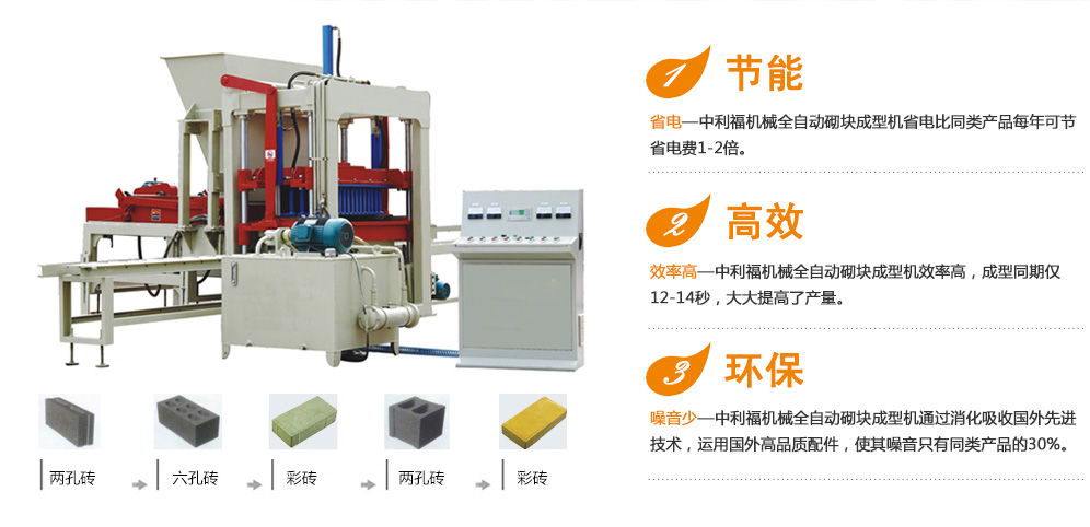 技術決定品質—中利福機械有限公司經多年研發,國內首創多功能中型系列磚機,一機多用,既可生產不同規格型號的墻體磚,也可生產不同規格的路面磚,空心磚、護坡磚、灰沙磚、耐火磚等。